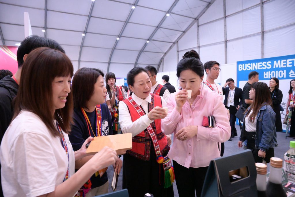 2025年堤川國際韓方天然物產業世博會今(9/20)日登場,花蓮縣獲邀參展,縣長徐榛蔚率團及縣內13家優質企業,前往韓國忠清北道堤川市共同推廣花蓮優質農特產,徐縣長更特別親自為堤川市長夫人逐一介紹每項產品,向國際友人展示花蓮的農特產與文化魅力。