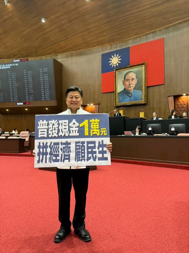 立院國民黨黨團總召傅崐萁表示,過去四年,政府累計超徵1.87兆元稅收,本來就應該還稅於民,國民黨團早在二月初就要求普發現金一萬元。加上今年國際貿易大戰及通貨膨脹隱憂,日本韓國新加坡等國家,都在普發現金協助人民度過經濟危機。行政院總算在立法院強力表決要求下,本會期編列預算。