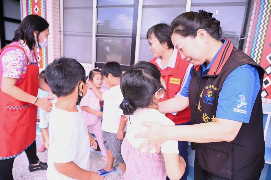 視察過程中,部長與縣長聽到幼兒園內傳來孩童的歡笑聲與歌聲,鼓勵及關懷幼兒園教師及孩童教學現況,現場氣氛溫馨活潑,讓人感受到災區中的希望與力量。