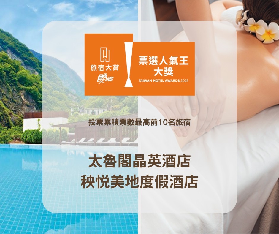 「食尚玩家旅宿大賞」不僅是年度票選活動,更是國旅住宿界的年度盛會與風向指標。今年花蓮獲獎旅宿類型多元,從綠建築、生態永續、景觀飯店到溫泉度假村應有盡有,展現地方旅宿的多元風貌與服務能量,花蓮獲獎旅宿包括「綠生態永續-秧悅美地渡假酒店、煙波花時間花蓮」、「異國度假風-花蓮理想大地、瑞穗天合國際觀光酒店」、「設計感旅店-煙波國際觀光集團花蓮太魯閣山闊館」、「超豪華服務-七星潭水上明月海景渡假旅店」、「殿堂級美食-麵包樹舍 B&B」、「最美景觀房-煙波國際觀光集團花蓮太魯閣沁海館、遠雄悅來飯店」、「定點深度玩-太魯閣晶英酒店」以及新設的「超暖心民宿大獎-波西米亞民宿」等,其中最終累積票數最高的前10名,更榮獲「最佳人氣大獎」殊榮,由「太魯閣晶英酒店」、「秧悅美地渡假酒店」雙雙摘冠,完整呈現台灣旅宿的創意與魅力,也再度印證花蓮在旅宿品質與品牌形象上的領先地位。
