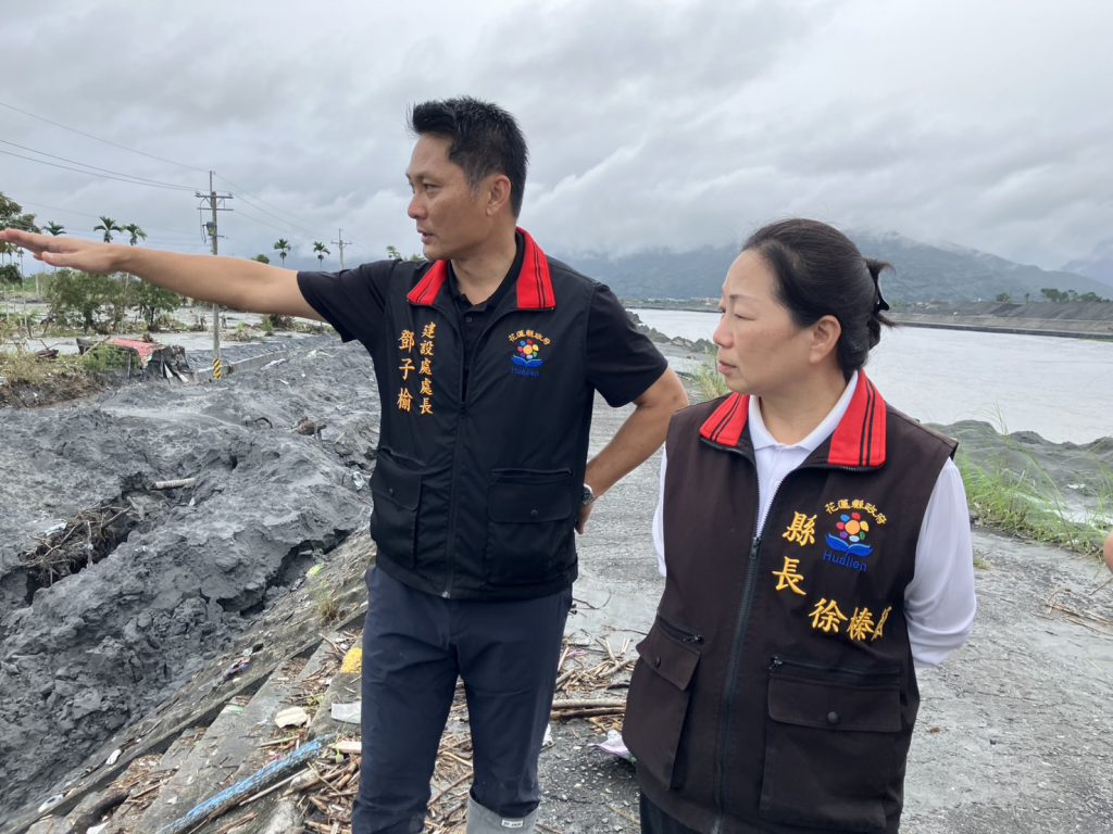 徐縣長接續前往馬太鞍溪堤防,了解水利署河道疏通現況,也感謝無論中央或地方第一線防汛人員在雨中堅守崗位。縣府將與水利署保持密切聯繫,隨時調派人力與機具支援,全力守護鄉親生命財產安全。