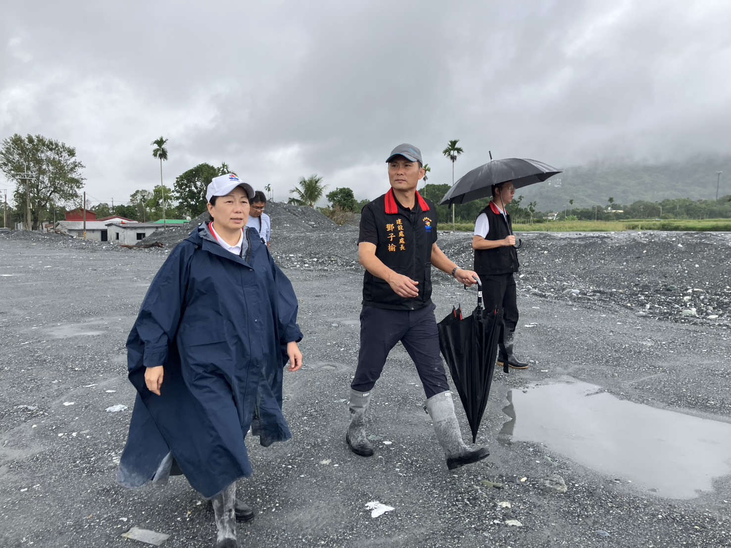 徐縣長接續前往馬太鞍溪堤防,了解水利署河道疏通現況,也感謝無論中央或地方第一線防汛人員在雨中堅守崗位。縣府將與水利署保持密切聯繫,隨時調派人力與機具支援,全力守護鄉親生命財產安全。