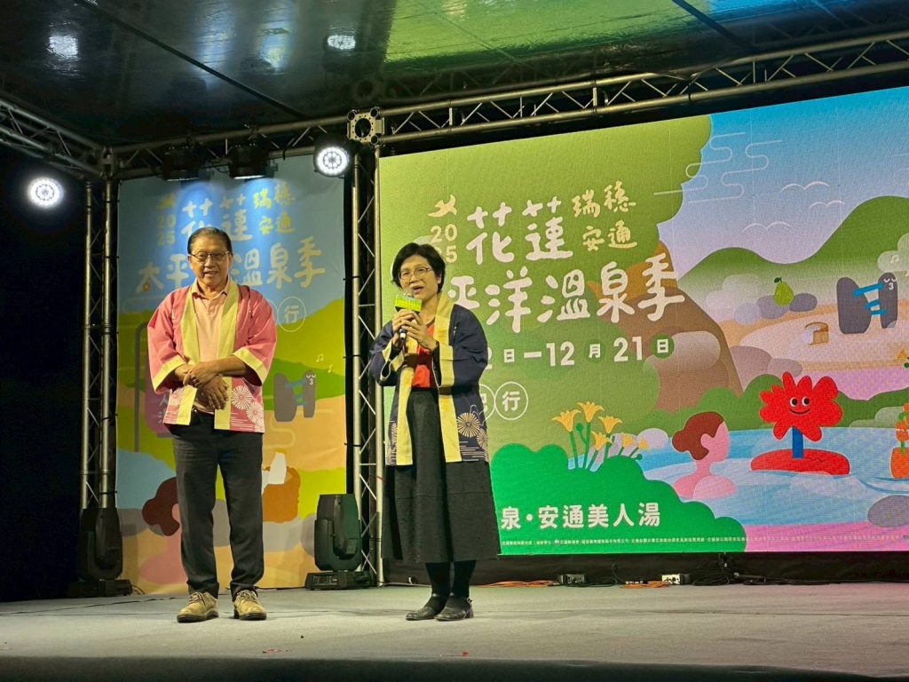 花蓮縣政府昨(11/22)日晚間於瑞穗天合國際觀光酒店廣場舉辦「2025花蓮太平洋溫泉季」盛大開幕典禮,宣告以瑞穗「英雄泉」與安通「美人湯」為核心的年度療癒盛事正式啟動。活動結合「小石花」設計,串聯文化創生、大健康旅遊與自然療癒,打造花蓮全新的國際溫泉觀光品牌。